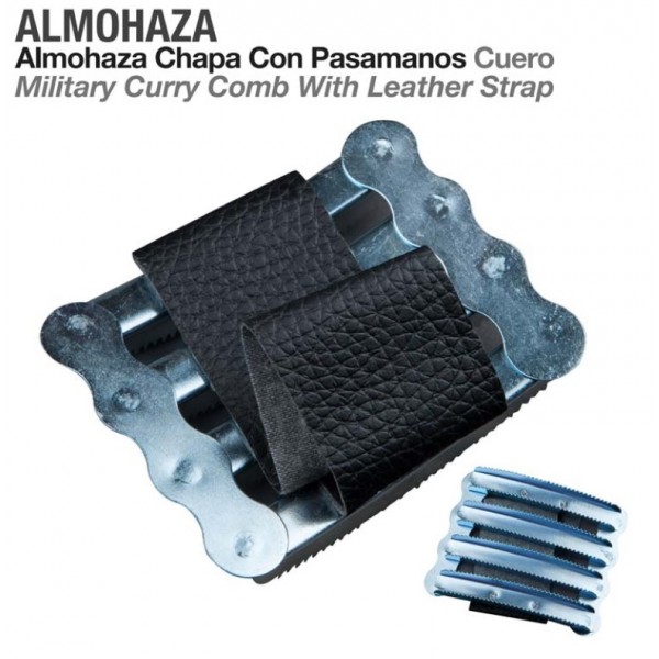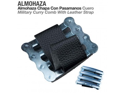 Almofaça de Limpeza em metal com uma Pega em Couro Concebida para  soltar os pêlos sujos de suor, urina ou lama seca. Remover os pêlos mortos no período da muda do pêlo.