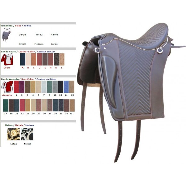 A Sela RELVAS é uma sela para usos diversos. Esta sela é inovadora, tem um design intermédio entre as selas inglesas e a sela Relvas.
