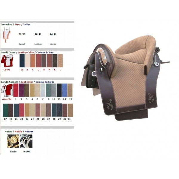 Esta sela evoluiu da sela usada em Portugal no século XVIII. Também tem a possibilidade de o coxim ser em couro liso ou camurça.