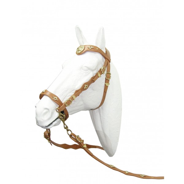 A cabeçada de Meia Cortesia tem a testeira e focinheira trabalhadas e com uma forma recta seguida de oval. Tem 1 par de rédeas trabalhadas e fivelas barrocas.