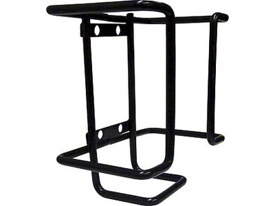 Em aço revestido, para ser aparafusado numa parede ou um suporte adaptado.