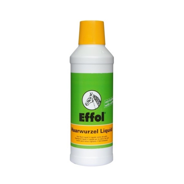 Effol loção para raízes capilares contém um complexo de cafeína e uréia que é extremamente eficaz no alívio da coceira e reduz a formação de caspa na pele e na crina e na cauda.