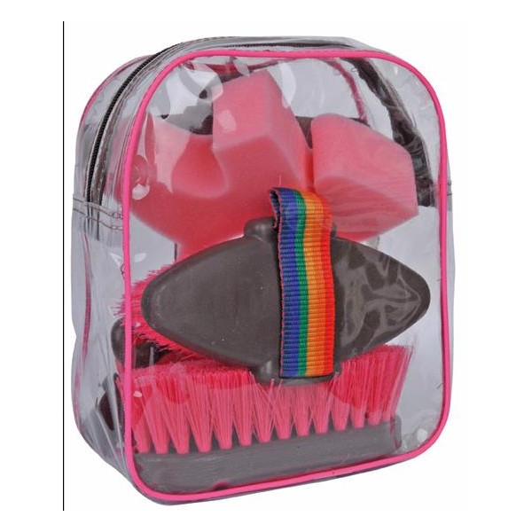 Mala com material de limpeza.