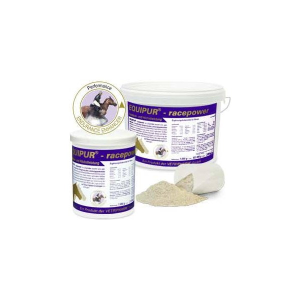 | EQUIPUR - racepower com carnitina provoca um aumento grande e longa duração do potencial de desempenho do cavalo. A activação do metabolismo muscular leva a um aumento de ganho de energia, bem como para uma protecção do desenvolvimento e das fibras musculares óptima. A redução acelerada em ácido láctico, bem como a melhoria da formação do sangue encurtar a fase de regeneração. Isso pode levar a um cavalo longa persistência no desempenho superior. Constituintes analíticos Proteína bruta 33,70% Gordura bruta 5,2% Fibra Bruta 2,8% Cinza bruta 11,3% Potássio 1,4% Calcio 0,7% Magnésio 0,7% Fósforo 0,4% Sódio 0,2% Lisina 3,2% Arginina 2,0% Treonina 1,0% Cistina 0,5% Metionina 0,5% Omega-3 os ácidos gordos 1,0% Aditivos de forragem por kg (litro)