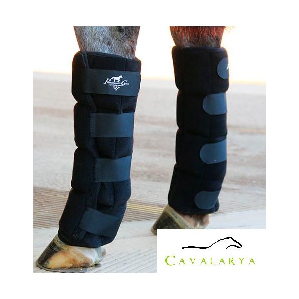 O Neoprene isola o gel congelados nos bolsos exteriores mantendo os protectores mais frios por mais tempo. Forro de nylon suave elimina a possibilidade de danificar o tecido da pele de expor diretamente ao gelo; Além disso, previne contra a sujeira, aparas e restos. Tiras de gancho estendida permitem fácil aplicação para todos os cavalos. Embalado em um conjunto conveniente de duas Estas botas também comentem um saco de transporte da malha. Para activar, coloque no congelador até o gel estar congelado, em seguida, pode ser transferido numa caixa de gelo ou refrigerador para uso longe do celeiro.