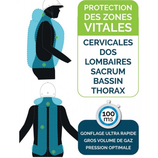 Com um tecido mais confortável e transpirável, o ZIP’IN 2 incorpora uma tecnologia verdadeiramente avançada do modelo ZIP’IN 1. Uma vez que a protecção optimizada continua a ser a prioridade, mantém-se a mesma forma de airbag que cobrirá as mesmas partes do corpo.