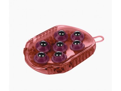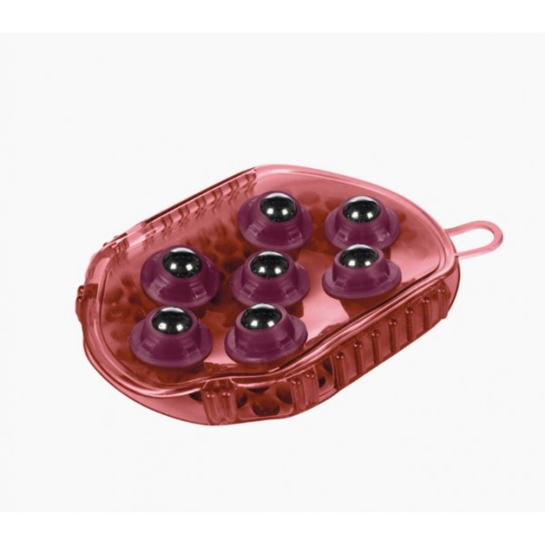 De um lado está um pente de caril com dentes, e do outro estão 7 berlindes de aço inoxidável para massagem.